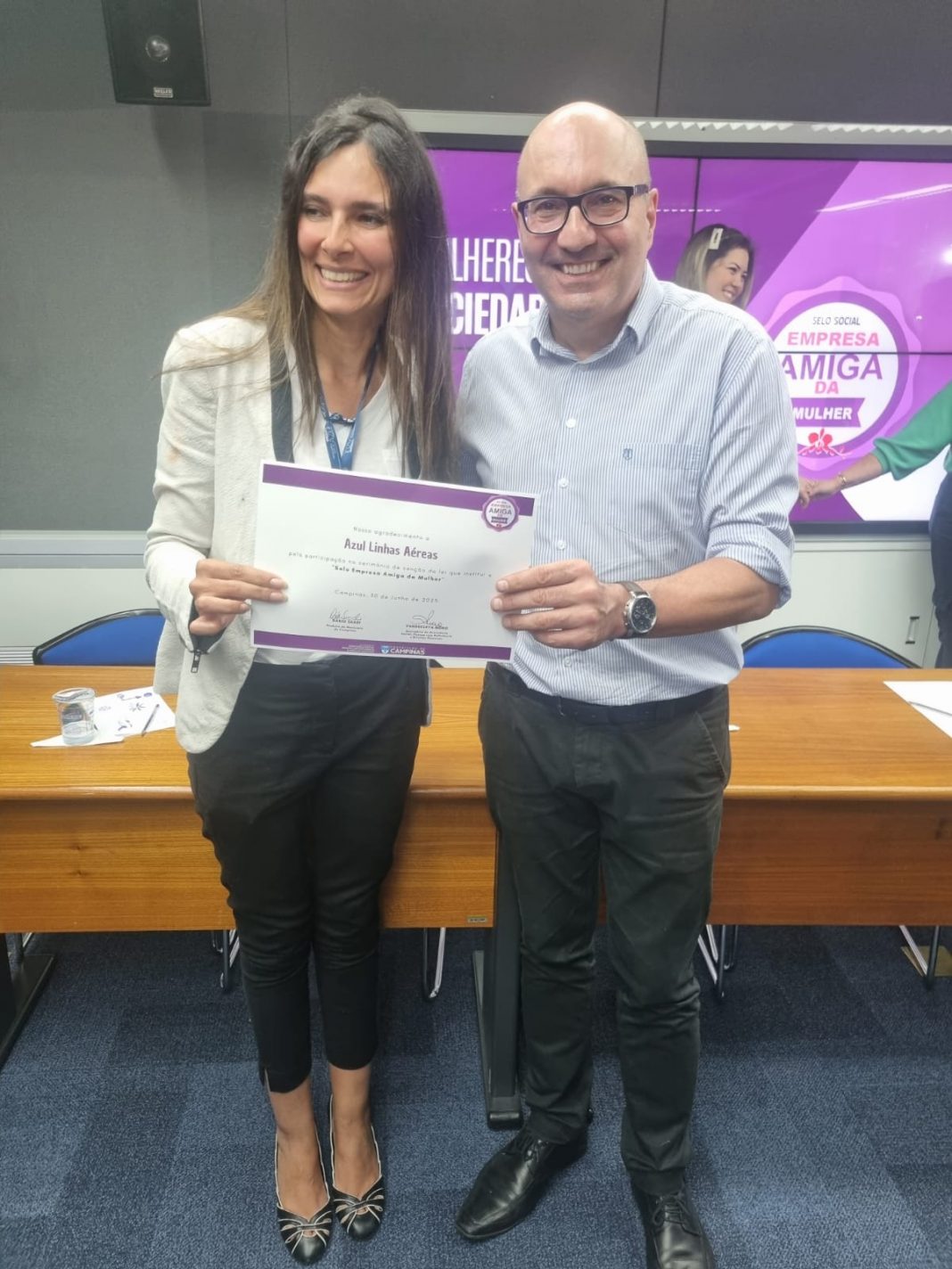A Azul Linhas Aéreas é uma das primeiras instituições em Campinas (SP) a receber o Selo Empresa Amiga da Mulher.