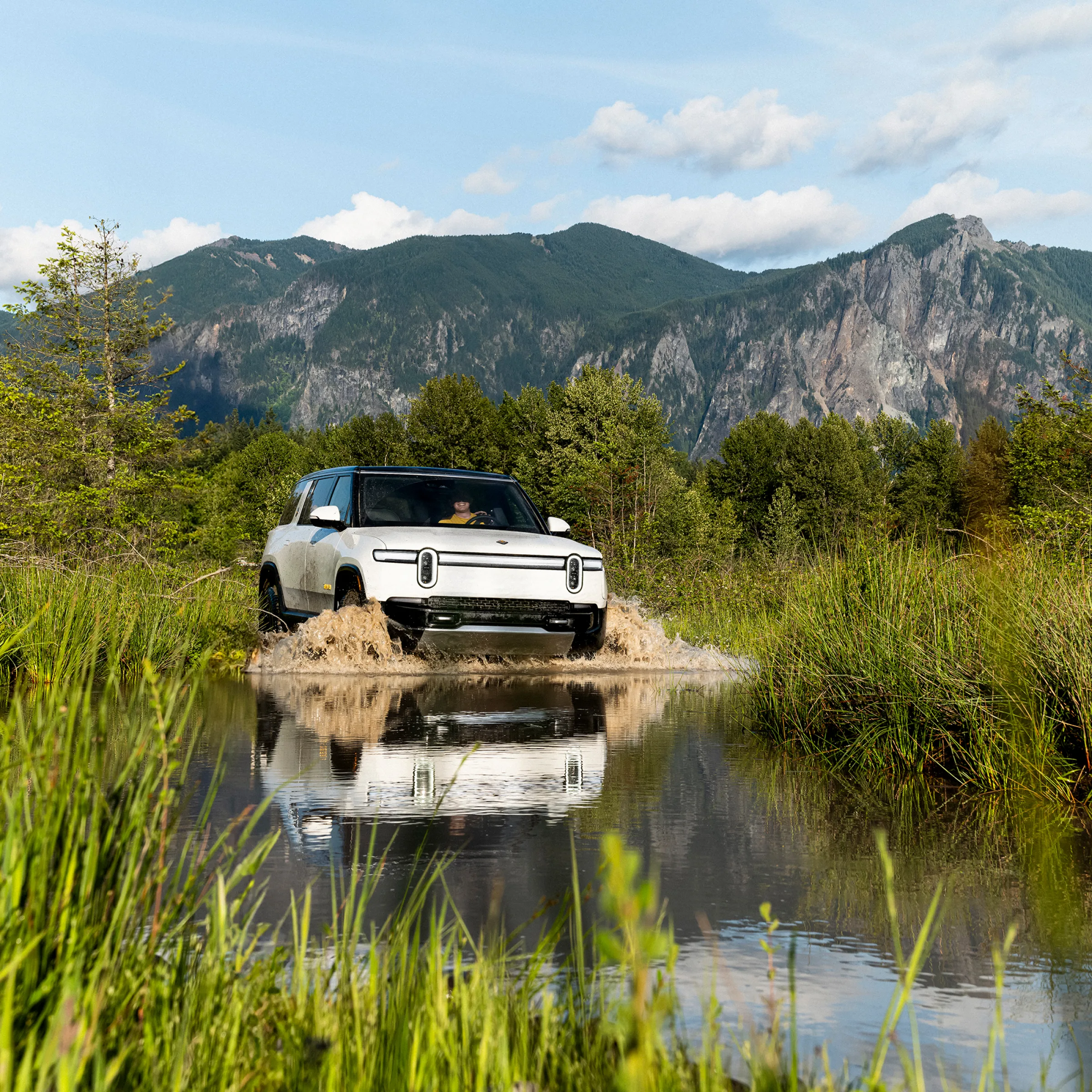 Com torque e potência poderosos, você está pronto para rebocar. A suspensão a ar adaptável ajuda a manter seu R1S nivelado e sob controle.