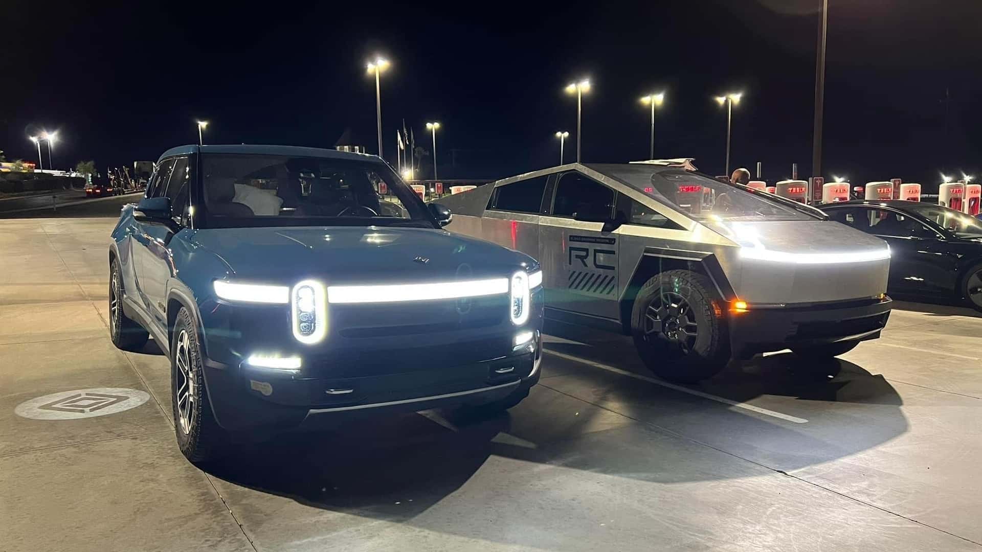 Tesla Cybertruck e Rivian R1T lado a lado: Revelando a diferença de tamanho